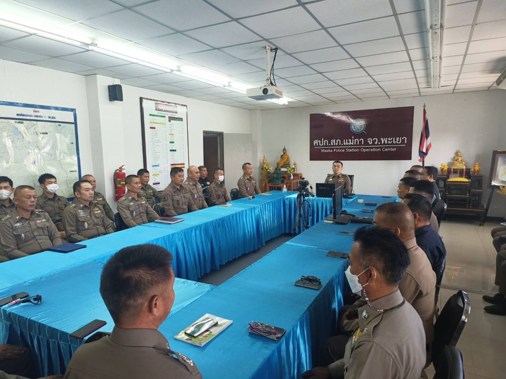 วันที่ 1 กุมภาพันธ์ 2567 เวลา 11.00 น. ณ ห้องประชุม สภ.แม่กา พ.ต.อ.วสวัตติ์ จันทร์ต๊ะฝั้น ผกก.สภ.แม่กา พ.ต.ท.สนิท ปทุมทิพสิริ รอง ผกก.สอบสวน ,พ.ต.ท.สุริยงค์ นามจิต รอง ผกก.สส. ,พ.ต.ท.พิสัณย์ ขันธอุบล สว.สส. ,พ.ต.ต.สหัส จินะผ่อง สวป. พร้อมข้าราชการตำรวจ สภ.แม่กา ได้ประชุมประจำเดือน และชี้แจง สั่งการข้อราชการต่างๆ