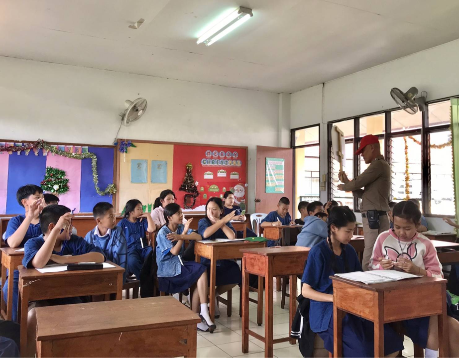 เมื่อวันที่ 4 ก.พ.2568 เวลา 09.00 – 11.00 น. ได้มีการดำเนินการตามโครงการครูแดร์ โดยมี ร.ต.ท.ฑูรญ์วรุตม์ คำดี ครูตำรวจแดร์ ของ สภ.แม่กา เข้าทำการสอนนักเรียน ป.5 โรงเรียนปิยมาตย์ ตำบลแม่นาเรือ อ.เมือง จว.พะเยา ตามโครงการหลักสูตรให้ความรู้เรื่องการต่อต้านการใช้สารเสพติดในเด็กเรียน (DARE) มีจำนวนนักเรียน 2 ห้อง จำนวน 32 คน คุณครูและ นักเรียนให้ความร่วมมือเป็นอย่างดี