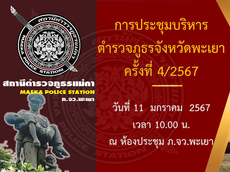 พ.ต.อ.วสวัตติ์ จันทร์ต๊ะฝั้น ผกก.สภ.แม่กา ร่วมประชุมบริหาร ภ.จว.พะเยา ครั้งที่ 4/2567 ณ ห้องประชุม ภ.จว.พะเยา