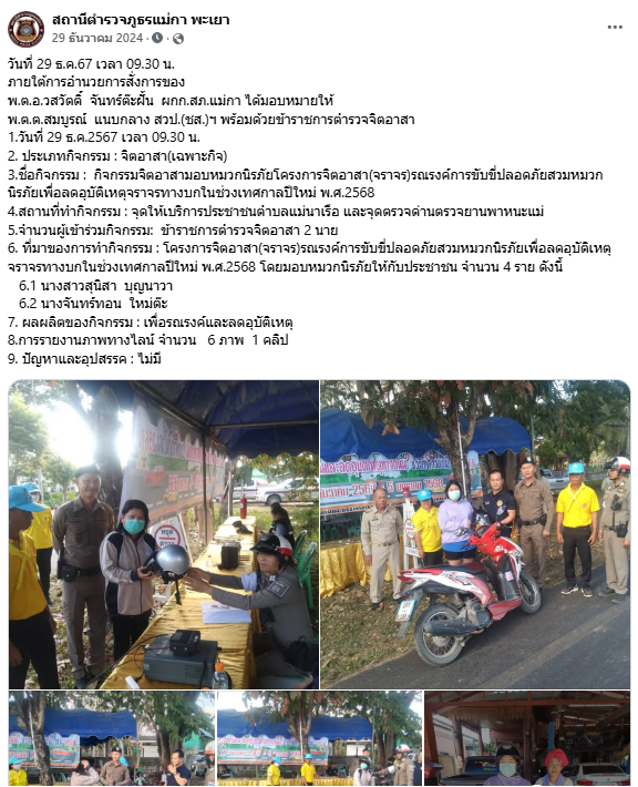 กิจกรรมจิตอาสามอบหมวกนิรภัยโครงการจิตอาสา(จราจร)