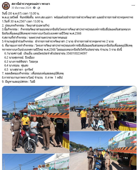 สถานีตำรวจภูธรแม่กา มาประชาสัมพันธ์โครงการชุมชนสัมพันธ์
