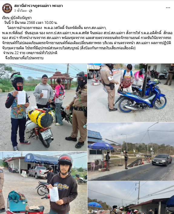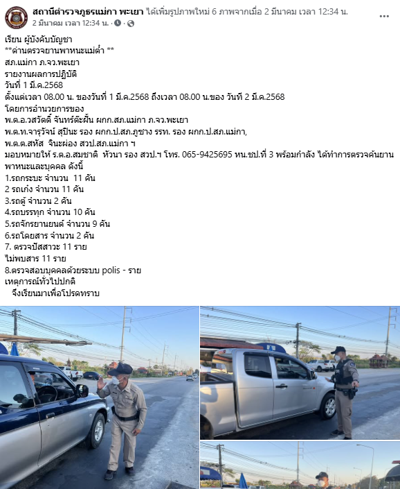ด่านตรวจยานพาหนะแม่ต๋ำ รายงานผลการจับกุม วันที่ 22 มี.ค. 68