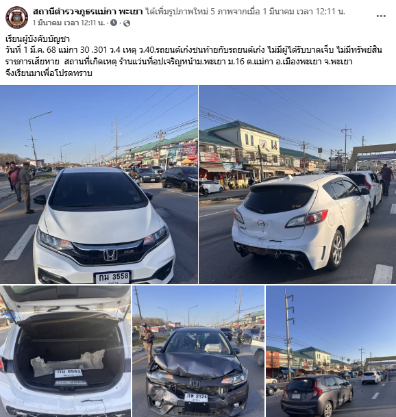 สภ.แม่กา รับแจ้งรถจักรยานยนต์ชนท้ายรถยนต์เก๋ง