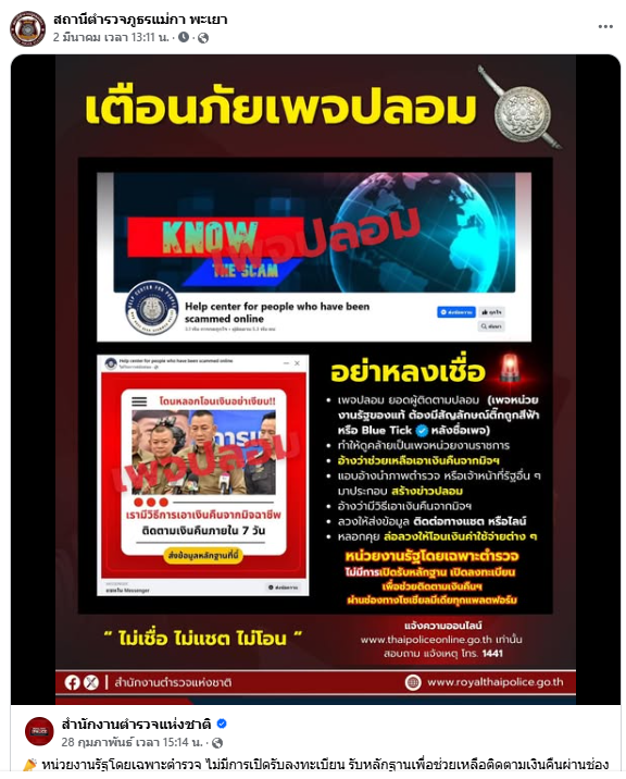 สภ.แม่กา – เตือนภัยเพจปลอม