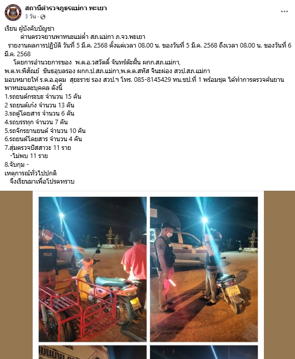 วันที่ 3 มี.ค. 68 แม่กา 20,201 ว.4 ตรวจสอบรถ จยย.หาย